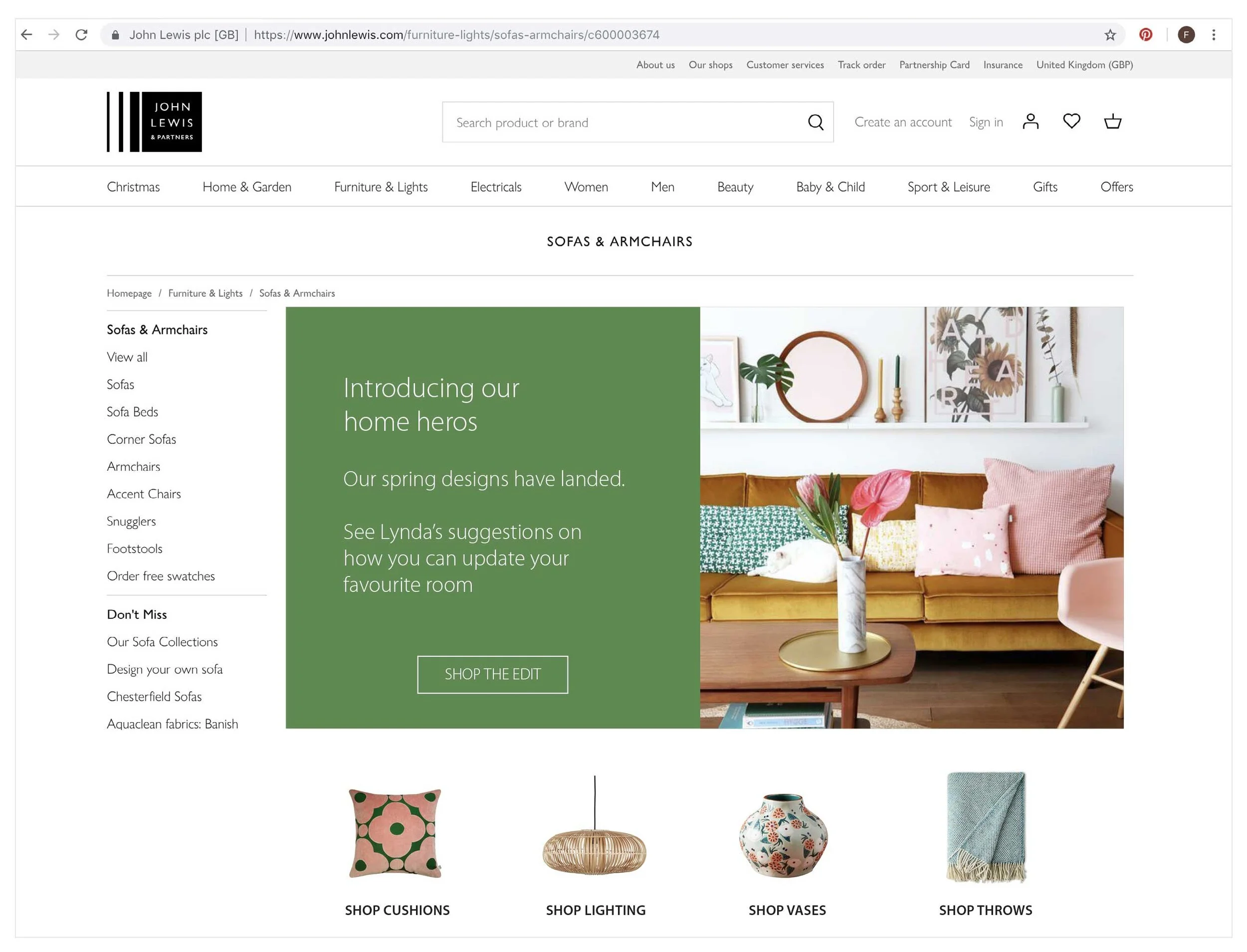 We want people to think.... John Lewis ‘gets me’. I have a young family. I need a new sofa. John Lewis & Partners can help recommend an upholstery for a new sofa that is easy to clean in a fabric that’s hardwearing.